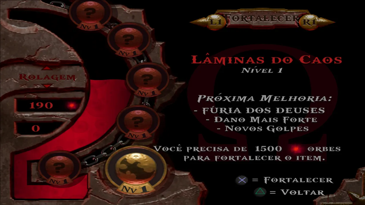 * Corrigido o bug que acontecia ao fortalecer as Lâminas do Caos para o Nível 4 na Tela “Fortalecer” (God of War).